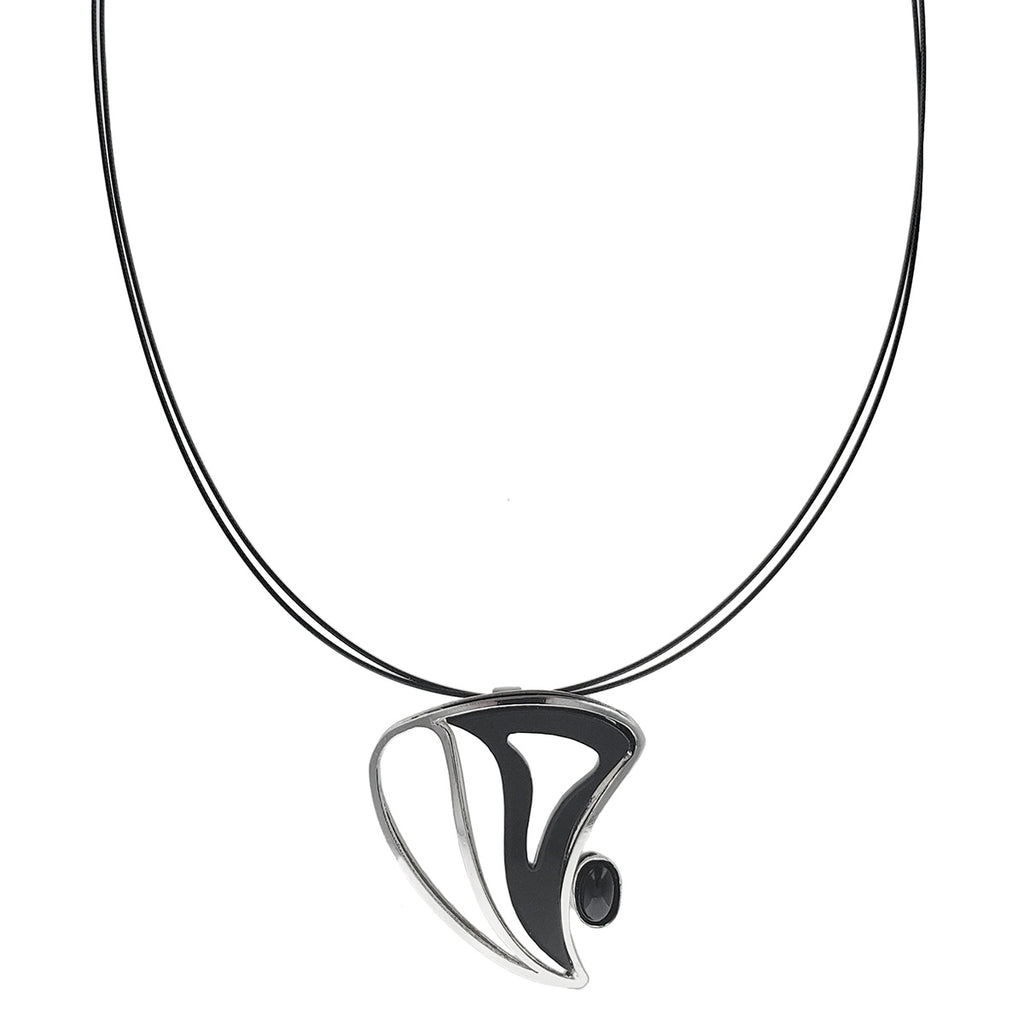 Christophe Poly Sliding Silver Black Pendant Necklace