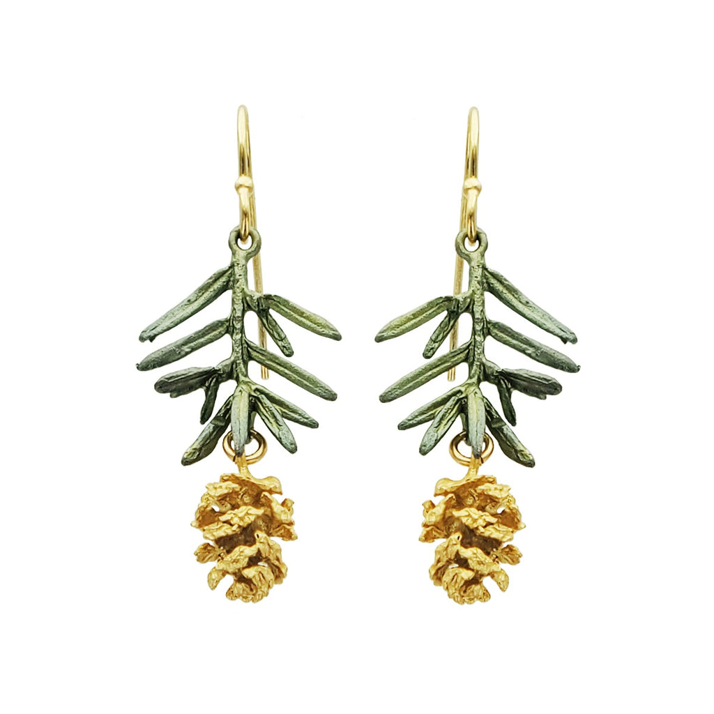Harness the beauty of the Evergreen Tree with these Michael Michaud Pine Cone Earrings. Handcrafted from bronze and cast directly from the pine needles, these earrings feature a distinct patina finished in green bronze creating a stunning contrast. Embrace the distinctive natural beauty of the pine cone design. Michael Michaud designs and handcrafts elegant jewelry that timelessly preserves nature's beauty in his New York studio.