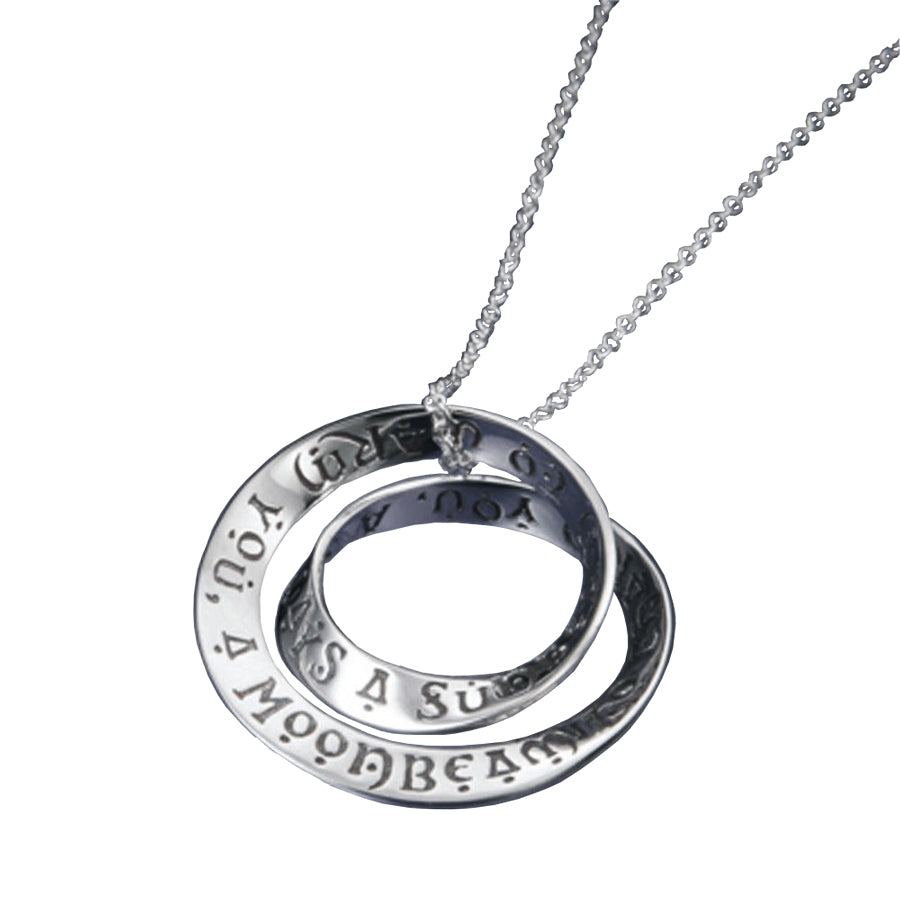 A sterling silver double mobius pendant keepsake necklace inscribed with a beautiful Irish blessing. The mobius form is a symbol of both oneness and infinity. The inscription reads: May God grant you always, a sunbeam to warm you, a moonbeam to charm you, a sheltering angel so nothing can harm you." Created with intention in NY.