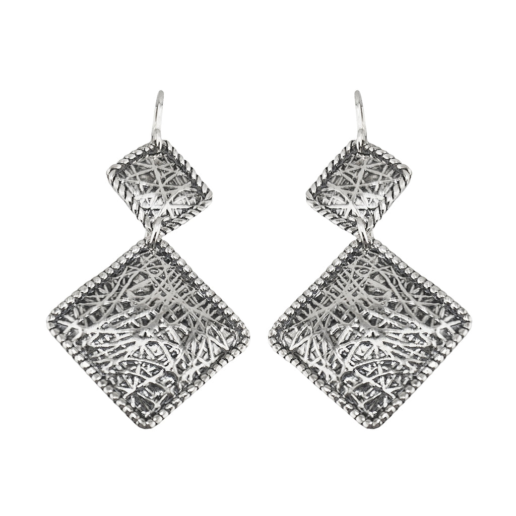 Sterling diamonds linked in a dance of light their surfaces alive with energetic texture, their beaded edges whispering handcrafted grace. Stamped on back with artists name in Hebrew and Israel. Artisan handmade in Qiryat-Gat, Israel surrounded by thousands of acres of national parks and agricultural villages.