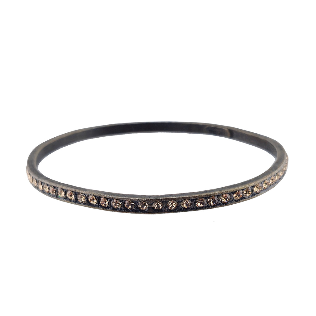 Stylish Rebel Designs antiqued brass single stackable bangle bracelet studded with handset Light Colorado Austrian Crystals for a sophisticated look. Inspired by the energy, vibrancy and exciting contrasts of NYC. Uniquely designed by Gina Riley and handmade in the Rebel Designs studio in New York City.