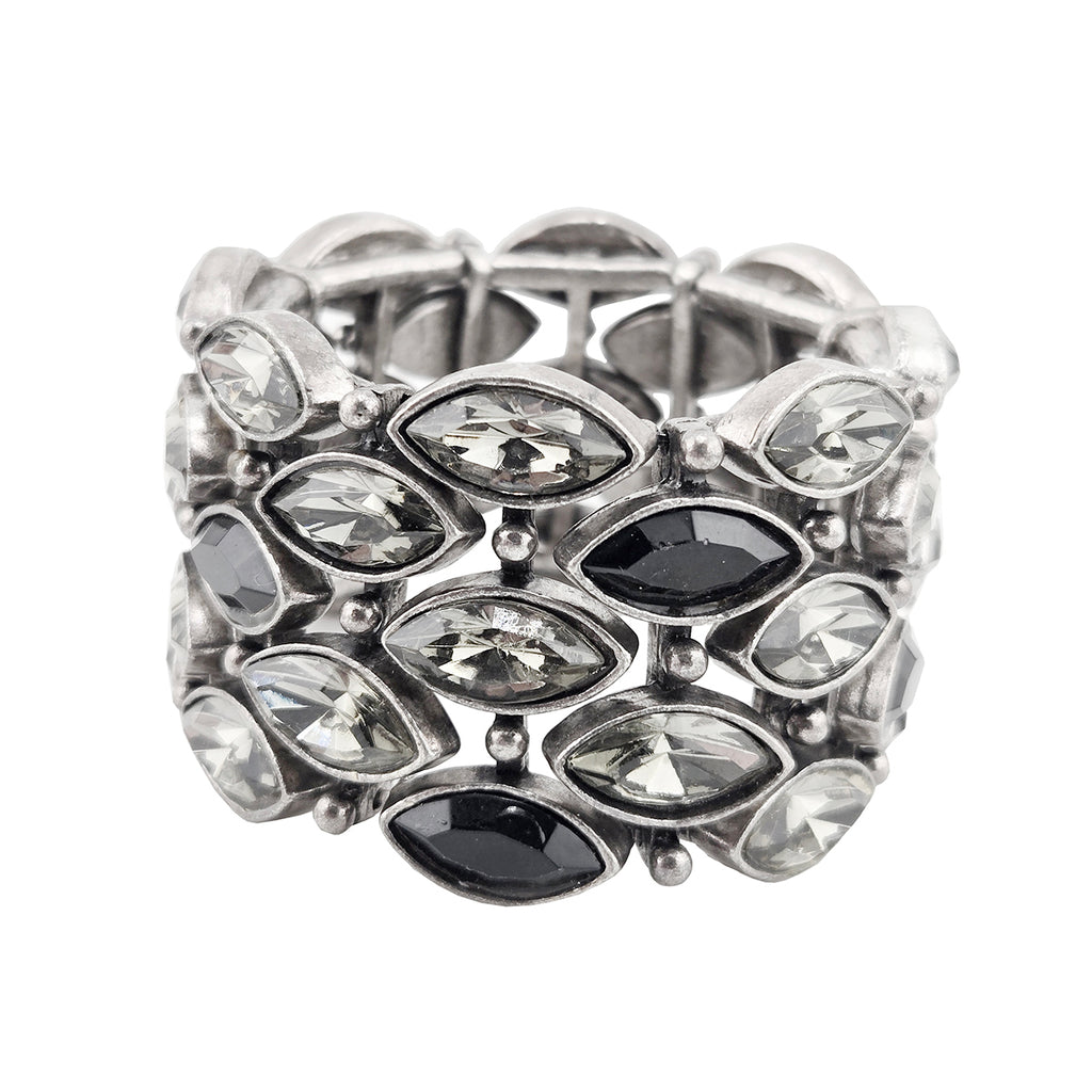 Avant Garde Paris Light Reflecting Navette Shaped Black Diamond Crystals Bracelet