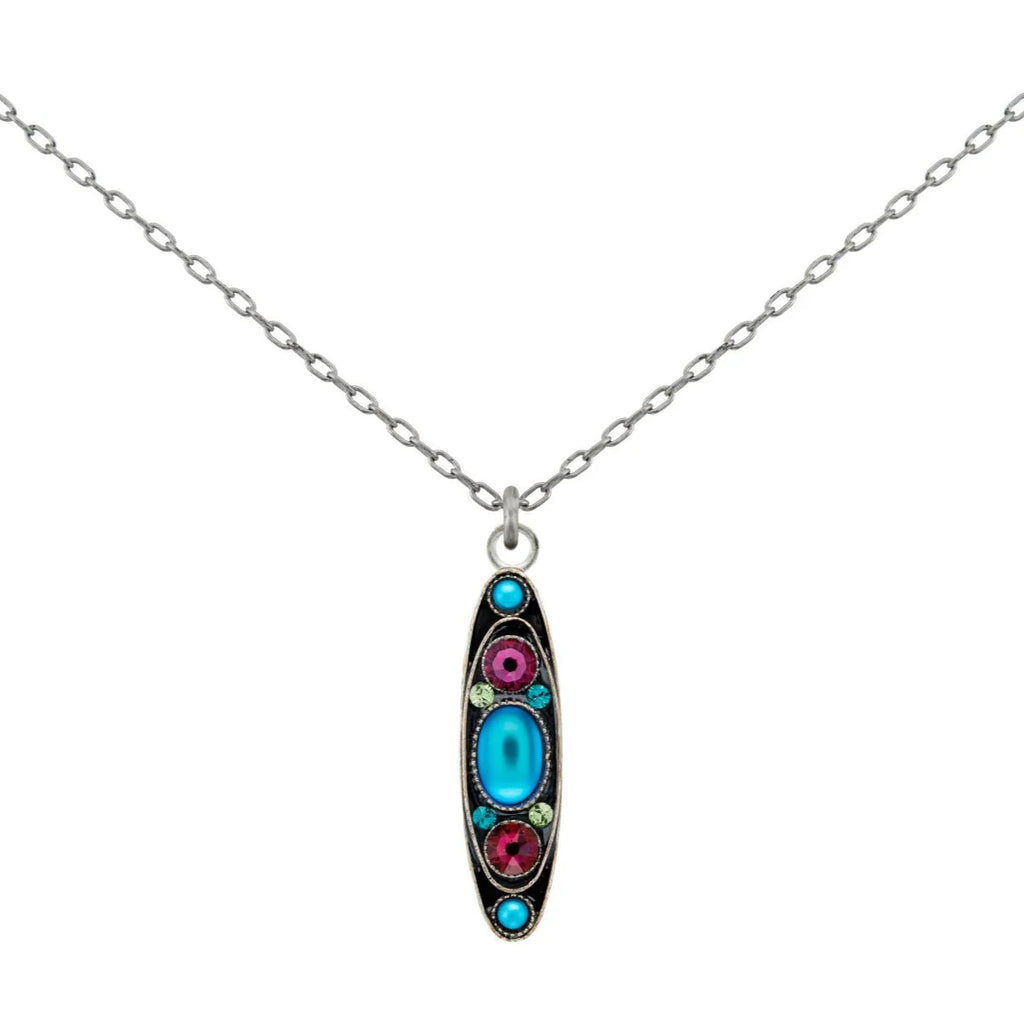 Firefly Mosaics Bermuda Blue Oval Pendant Necklace