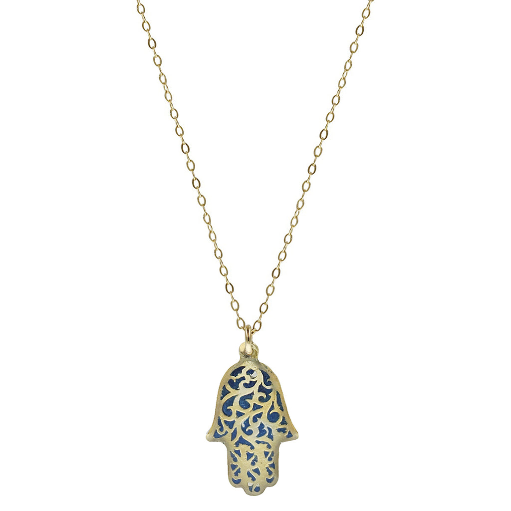 Israeli Minimalist Blue Filigree Hamsa Necklace